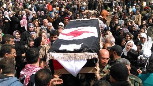 الحزب وأهالي سلمية شيعوا الشهيد الرفيق حسين المعمار وشهداء مجزرة قرية المبعوجة | |||