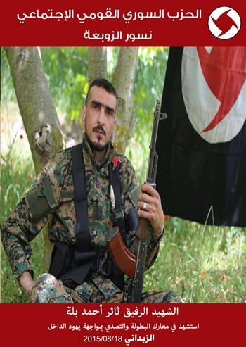 الحزب يزفّ الرفيق ثائر أحمد بله شهيداً خلال تأديته واجبه القومي في معركة تحرير الزبداني | |||