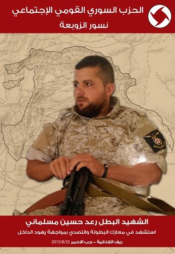 يزفّ الحزب الى الأمة وعموم السوريين القوميين الاجتماعيين في الوطن وعبر الحدود، الرفيق رعد حسين المسلماني شهيداً أثناء تأديته واجبه القومي.
