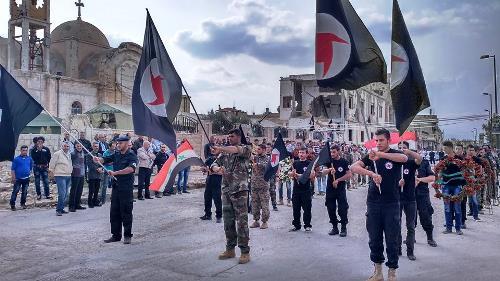 شيّع الحزب في مأتم حزبي وشعبي مهيب، الشهيد الرفيق خليل أدهم جرّوس الذي استشهد أثناء قيامه بواجبه القومي. انطلق موكب التشييع من المستشفى العسكري في حمص باتجاه مدينة القصيْر، مسقط رأس الشهيد، مروراً بمكتب منفذية حمص حيث احتشد القوميون وأدّوا التحية للجثمان وواكبوه إلى مدينة القصيْر في نطاق منفذية العاصي. وعلى امتداد الطريق كانت تنضمّ إلى الموكب مجموعات من القوميين، وعند مدخل القصيْر احتشد القوميون والمواطنون وحملوا نعش الشهيد على الأكفّ إلى منزله في القصيْر، من ثم إلى الكنيسة، وسار في مقدّمة التشييع حَمَلة الأعلام والأكاليل والفرقة الكشفية الموسيقية. شارك في التشييع إلى جانب عائلة الشهيد، نائب رئيس المكتب السياسي في الشام الأمين بشار يازجي، منفذ عام منفذية حمص الأمين نهاد سمعان، عضو المكتب السياسي الرفيق طارق الأحمد، منفذ عام الهرمل، منفذ عام العاصي وهيئة المنفذية، هيئة منفذية حمص وعدد كبير من مسؤولي الوحدات الحزبية وفصائل من نسور الزوبعة. كما حضر التشييع العقيد سليمان قنا والعديد من الفاعليات. وألقى كاهن الرعية في القصيْر الأب عصام كاسوحة كلمة الكنيسة وأهل الشهيد أشاد فيها بفضائل الرفيق خليل واندفاعه ومحبته لوطنه، كما أشاد بدور الحزب السوري القومي الاجتماعي والجيش السوري في الدفاع عن الوطن وشكر في نهاية كلمته كلّ من شارك في التشييع. وألقى عضو المكتب السياسي الرفيق طارق الأحمد كلمة المركز، استهلها بنقل تعزية رئيس الحزب الأمين أسعد حردان إلى أهل الشهيد وعائلته، وقال: اليوم عرس الشهيد، الذي ولد في هذه البلدة المقاومة منذ عشرة آلاف عام... وهو سيبقى فيها سوريّاً خالداً لأكثر من عشرة آلاف عام مقبلة، لأنه وباقي الشهداء هم الخالدون في حين يفنى الآخرون... أضاف: شهداؤنا يدافعون عن سورية الأرض والمعنى والصيغة، هو الشهيد الرفيق خليل جروس الذي ولد في بلدة القصيْر المقاومة والتي اقتلعت أحد أهمّ مراكز الاستخبارات التآمرية لـ"الموساد"، والذي أنشئ فيها في بداية الأحداث السورية، إلى أنّ تحرّرت بفضل الجيش السوري والمقاومة. وتابع: الشهيد الرفيق خليل هو الذي ناضل وقاتل أيضاً في ثغور بلدة صدد الصامدة في قلب البادية السورية حيث أعتى أنواع الصلف الإرهابي، لتكون عاصمة الصمود للسوريين القوميين الاجتماعيين، ويكون هو الشهيد خليل من أولئك الذين عشقوا الموت متى كان طريقاً الى الحياة، ولذلك كله تحيا سورية. وأردف: إن الحزب السوري القومي الاجتماعي الأمين أسعد حردان، هذا الحزب المقاوم الذي هبّ للدفاع عن تراب سورية وهويتها وسيادتها الى جانب الجيش السوري وحزب الله وكافة قوى المقاومة، يزفّ لكم هذا العرس الذي يأتي فيه الشهيد الى بلدته ليثبت أنه ابن هذه الأرض وابن هذا الحزب وابن هذا الفكر الذي أسّسه أنطون سعاده، ويثبت فيه اليوم شهداؤنا ما خطه لنا بأنّ الدماء التي في عروقنا هي وديعة الأمة وهي حقاً تجدها الآن طالما أنها قد طلبتها، ولأننا حزب قتال ولسنا حزب أقوال، نقول بأنّ هذا هو نداء الواجب والذي شكل معنى الصمود الذي لولاه، وهذا ما يجب ان يعرف الصديق والعدو وكلّ الناس، بأنه لولا صمودكم ودماء الشهداء التي قدّمت على هذي الأرض وتقديمكم الصيغة والمعنى المعزّز بصحة العقيدة، لما كان من الممكن لأيّ كان أن يساعد سورية من الحلفاء، وانّ سورية اليوم تعود لتقلب المعادلات الجيواستراتيجية في المنطقة، وتعيد الثقل النوعي في مقابل أعتى الأعداء وأقواهم، بمساعدة الحلفاء نعم، ولكن لأنها صمدت ولأنها بصمودكم حققت معادلة الثبات الاستراتيجي التي تتيح للأقوياء أن يدخلوا معها في حلف له طبيعة الثبات، وتستطيع فيه أن تكون نداً للأقوياء في العالم... وتابع الرفيق الأحمد قائلاً: من هذه البلدة الصامدة المقاومة التي يسكنها أهلها وهي أكثر من نصف مدمّرة لكي لا يتركوا أرضهم، نقول ونؤكد أننا سوف ننتصر، وسوف نعيد البناء والإعمار، وسوف نعيد الدورة الاقتصادية الى شرايينها لنحقق اللبنات الأولى في بناء نهضتنا ال