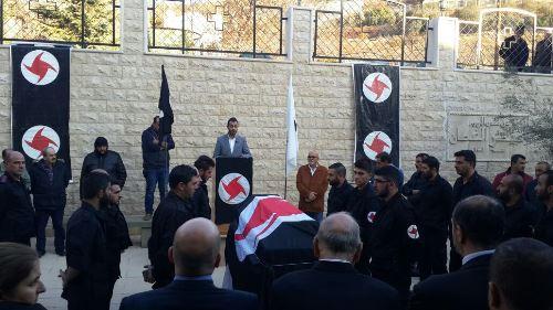 وحُمل نعش الراحل إلى مثواه الأخير مجللا بعلم الزوبعة، وأدى له القوميون التحية الحزبية.