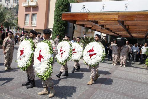 شيع الحزب في مأتم حزبي ورسمي وشعبي حاشد رئيسه السابق الأمين علي قانصو، حيث انطلق موكب التشييع عند العاشرة صباحاً من أمام مستشفى ومركز بلفو الطبي بحضور عائلة الفقيد ووفد مركزي من قيادة الحزب وجمع من القوميين، وقد أدّت فصائل رمزية في الحزب التحية الحزبية للراحل. سار الموكب السيار باتجاه الجنوب وصولاً إلى ساحة الدوير حيث كان بانتظار العائد الكبير حشد من الأهالي والأصدقاء والقوميين. وفي ساحة البلدة رفع الجثمان على الأكفّ مزداناً بعلم الزوبعة باتجاه دارته لوداع أهله وذويه الذين كان قاسياً وصعباً الاقتراب من حزنهم وملامسة ألمهم الكبير، يتقدّمهم حملة الأعلام وأكاليل الزهور، ومن ثم الى حسينية الدوير التي غصّت بالمودّعين والمعزين. وقد حضر إلى جانب عائلة الفقيد الكبير وفد من قيادة الحزب تقدّمه رئيس الحزب، رئيس المجلس الأعلى ، نائب رئيس الحزب ، نائب رئيس الحزب رئيس المكتب السياسي في الشام ، ناموس المجلس الأعلى، الرئيس الأسبق للحزب الأمين مسعد حجل، رئيس هيئة منح رتبة الأمانة ، أعضاء مجلس العمد والمجلس الأعلى والمكتب السياسي والمسؤولون المركزيون وأعضاء الكتلة القومية النائب الأمين سليم سعادة والنائب السابق د. الأمين مروان فارس، رئيس المجلس القومي، وعدد من المنفذين العامين وهيئات المنفذيات ومسؤولي الوحدات الحزبية. وشارك في التشييع رئيس الجمهورية العماد ميشال عون ممثلاً بالوزير نقولا تويني، الرئيس السوري الدكتور بشار الأسد ممثلاً بالسفير علي عبد الكريم علي، رئيس مجلس النواب نبيه بري ممثلاً بالنائب علي بزي، رئيس الحكومة سعد الحريري ممثلاً بالوزير نهاد المشنوق، الأمين العام لحزب الله السيد حسن نصرالله ممثلاً برئيس كتلة الوفاء للمقاومة النائب محمد رعد، رئيس المجلس الإسلامي الشيعي الأعلى الشيخ عبد الأمير قبلان ممثلاً بالمفتي الجعفري الممتاز الشيخ أحمد قبلان، بطريرك الروم الأرثوذكس يوحنا يازجي ممثلاً بالمطران قسطة، رئيس التيار الوطني الحر الوزير جبران باسيل ممثلاً بالوزير طارق الخطيب، الوزيران محمد فنيش وغازي زعيتر، النواب: د. قاسم هاشم، عبد الرحيم مراد، جهاد الصمد، بهية الحريري، علي عسيران، ابراهيم عازار، ياسين جابر ممثلاً بالمحامي جهاد جابر، هاني قبيسي ممثلاً بالدكتور محمد قانصو، الوزراء والنواب السابقون: د. عدنان منصور، د. فايز شكر، نزيه بيضون، عبد المطلب حناوي ورئيس تحرير «البناء» ناصر قنديل. الأمين العام للمجلس الأعلى السوري اللبناني الأمين نصري خوري، نائب رئيس المجلس السياسي في حزب الله محمود قماطي، وفد من السفارة الإيرانية يتقدّمه المستشار السياسي السيد إلهي، السفير آصف ناصر، وفد من حركة رئيس المكتب السياسي جميل حايك وعضو هيئة الرئاسة د. خليل حمدان وباسم لمع، رئيس الحزب التقدمي الاشتراكي وليد جنبلاط والنائب تيمور جنبلاط ممثلين بالنائب السابق علاء الدين ترّو وأمين السرّ العام في «التقدّمي» ظافر ناصر، الأمين العام للحزب الشيوعي اللبناني حنا غريب ممثلاً بالدكتور علي الحاج علي، الأمين العام السابق للحزب الشيوعي د. خالد حدادة، الأمين القطري لحزب البعث العربي الاشتراكي في لبنان نعمان شلق ممثلاً بأمين فرع الجنوب أحمد عاصي، وممثلون عن فصائل منظمة التحرير الفلسطينية وفصائل المقاومة الفلسطينية. كما شارك في التشييع قائد الجيش العماد جوزيف عون ممثلاً بالعميد عبد الكريم حاطوم، المدير العام للأمن العام اللواء عباس ابراهيم ممثلاً بالعقيد علي حطيط، المدير العام لأمن الدولة اللواء أنطوان صليبا ممثلاً بالرائد حسين طباجة، قائد سريد درك النبطية العقيد توفيق نصرالله، رئيس مكتب مخابرات الجيش في النبطية العقيد علي اسماعيل، المقدم محمد شريم، محافظ النبطية القاضي محمود المولى، رئيس مجلس الجنوب د. قبلان قبلان، رئيس الجامعة اللبنانية البروفسير فؤاد أيوب، مدير عام الصندوق الوطني للضمان الاجتماعي د. محمد كركي، المستشار الإعلامي لرئيس مجلس النواب علي حم