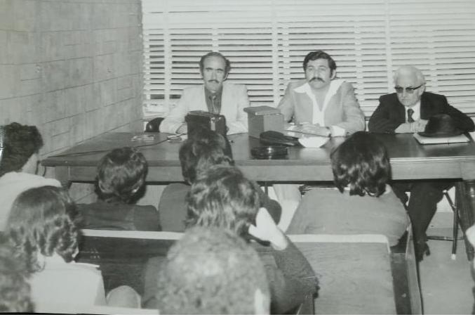 من بين الندوات تلك التي قدمها الرفيق الباحث جان داية. ويبدو من جهة اليمين الأمين عبد الله قبرصي ومن جهة اليسار الرفيق أنطون قرة بت الذي تولى لفترة غير قصيرة مسؤولية مدير المديرية.