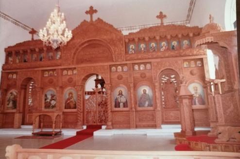 "حفر يد فنان يوناني ماهر على خشب الماهوكني البرازيلي، ودشن من قبل صاحب الغبطة – البطريرك اغناطيوس الرابع – الجزيل الاحترام يوم 7 تشرين الأول سنة 1984 م." انابوليس / 23 آذار 1990