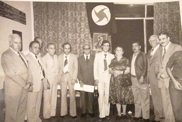 الرفيق جان عبدو، الرفيق شريف إبراهيم، الرفيق الشاعر من احدى المناسبات الحزبية في سان باولو، يبدو من اليمين: