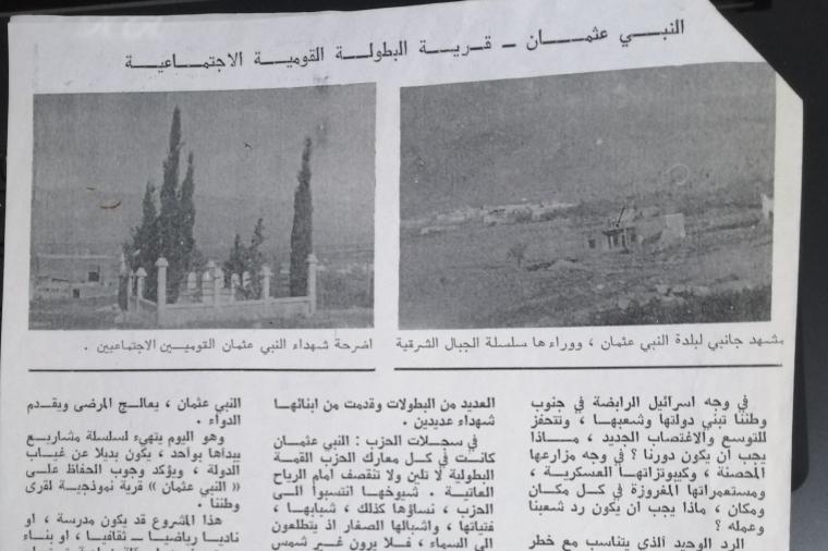 هذه هي النبي عثمان، قرية البطولة والايمان تقف كالطود في وجه اعاصير الرجعية وتقدم للجميع مثلاً حياً على قدرة شعبنا على الارتفاع فوق قيود الانشداد الى الماضي.