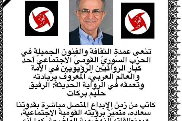 وفاة عالم الإجتماع والروائي السوري حليم بركات