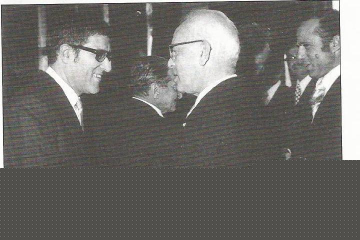 مع الرئيس سليمان فرنجية وبدا الرئيس كامل الاسعد الرفيق جبران حايك مع الرفيق نظمي عزقول
