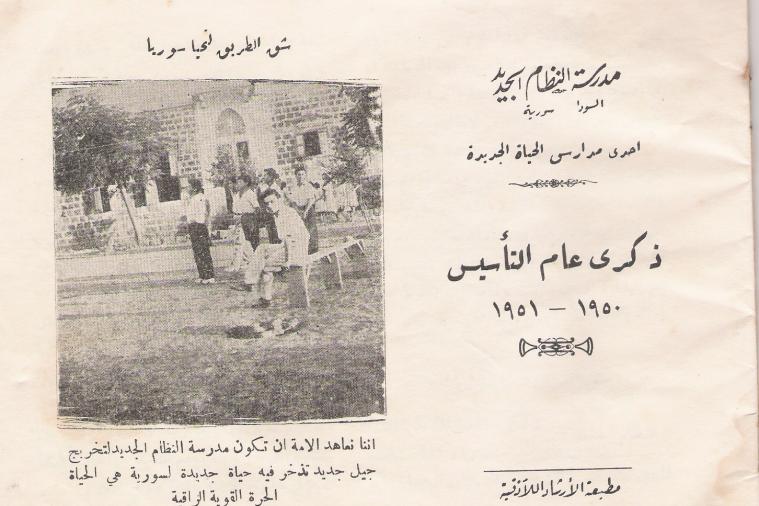 نشكر المربي الرفيق، القدوة في المناقب وفي الايمان بالقضية القومية الاجتماعية والاخلاص لمفاهيمها ولنهجها، عفيف خوري، الذي قدم لنا كراساً كانت اصدرته مدرسة النظام الجديد في ذكرى عام التأسيس 1950-1951 فمنه هذه المعلومات.
