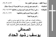 " فقدنا اليوم زميلاً وصديقاً ترافقنا معاً في جريدة "نداء الوطن" على مدى ١٠ سنوات وكان لطيف المعشر وودوداً جداً ومحباً للخدمة العامة …إنه جوزف حداد إبن كفرحونة الذي أغمض عينيه في الضيعة التي أحب والذي لم يعد جسده يقوى على محاربة غسيل الكلى هو الذي حارب من أجل أفكاره "القومية" من دون أن يكون متقوقعاً على الآخرين بل تميّز بانفتاحه وحبّه للنقاش السياسي …