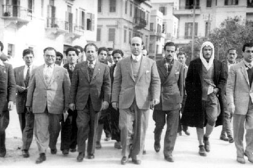الامين سعيد ورد الى يسار الزعيم لأمين سعيد ورد يرتدي الكوفية البيضاء