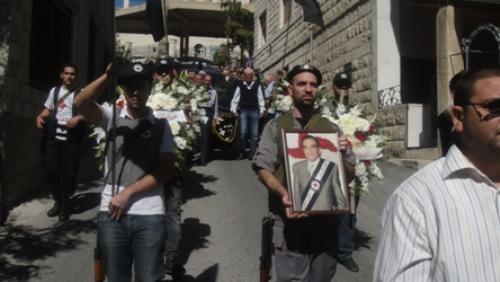 تقدم موكب التشييع حملة الاعلام والأكاليل، وأدت ثلة من القوميين تحية الوداع للراحل.
