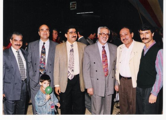 الرفيق المرحوم عبد بصل والى يمينه: الرفيق المرحوم جهاد عبد الخالق، الامين لبيب ناصيف،