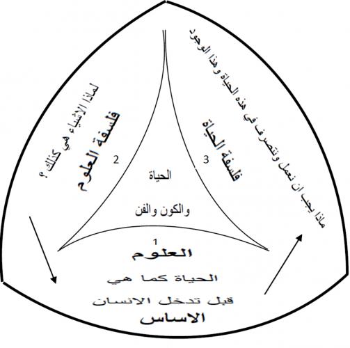 1 – العلوم هي حاصل درس الحياة والانسان وكل ما يحيط بهما من مادة وقيم ومعرفتها معرفة عقلية يقينية بالتجربة والبرهان والقياس. هي معرفة الوقائع والحقائق كما هي . 2 – فلسفة العلوم هي درس مبادئ واسباب وعوامل الحياة والانسان والاشياء ، هي البحث عن اجابات للاسئلة التي لا تنتهي في هذه المواضيع مثل : ما هو سبب وجود الحياة اي لماذا وجدت الحياة وما هو سبب وجود الكواكب وسر انتظام حركتها ،ما هو سبب دوران الارض ، لماذا يتوزع النوع البشري الى اجناس سلالية متعددة، متى حدث ذلك وكيف ولماذا. لماذا هناك امم ومجتمعات وليس امة واحدة ومجتمع واحد يضم البشرية كلها ولماذا تتعدد الثقافات الانسانية وتتباين ولماذا لا يوجد ثقافة انسانية واحدة جامعة شاملة دون تباين بين مجتمع واخر .ما هو الصراع ولماذا يوجد صراع مصالح بين الامم وما هو المبدأ والسبب الاساسي لهذا الصراع ....الخ. كلما توغلنا في المزيد من هذه الاسئلة نصل الى فكرة الله علة وجود الحياة والانسان والغرض من وجود الحياة والانسان. وكل سؤال من هذه الاسئلة الكثيرة التي لا تحصى ولا تعد عندما يجد جوابه الاكيد المثبت بالبرهان يصبح علما ويبطل ان يكون في دائرة فلسفة العلوم.الذي يبقى في دائرة فلسفة العلوم هو السؤال الذي لم يجد جوابا علميا اكيدا عليه بعد، هو الذي لا يزال خاضعا للتأويل والتخمين والترجيح والنظريات التي لم يتم برهانها بالعلم والتي تحمل في ذاتها امكانية خطئها وبطلانها كما امكانية صحتها وصلاحها. ولا بد من الاشارة الى ان الاجابة العلمية على بعض الاسئلة المشار اليها فوق، وغيرها، قد استغرق الاف السنين من التفكير والتخمين والبحث الى ان اصبح علما أي الى ان اصبح حقيقة معروفة عند الانسان بعدما كان حقيقة معروفة عند الله، أي الى ان اكتسب قيمة الحقيقة حيث الحقيقة كقيمة انسانية هي وجود ومعرفة انسانية لهذا الوجود. 3 – عملية الاستفادة من العلوم ، من الحقائق والمعارف الانسانية، اي عملية استعمال العلوم واستخدامها من اجل الحياة وتحسين الحياة وتجويدها هي ما نسميه بالفن .لذلك كثيرا ما نقرن العلوم بالفنون ونقول : العلوم والفنون. اما فلسفة الحياة فهي ارقى مراتب الفنون . هي فن التخطيط للحياة الجيدة التي فيها الحق والخير والجمال . الفلسفة هي فن رسم الحلول الذهنية لقضايا الحياة استنادا الى معارف الانسان واختباراته وعلومه وثقافته. وهكذا فشرط الفلسفة لان تكون فلسفة صحيحة نافعة هي ان تكون مؤسسة على العلم وحقائق الحياة والوجود وان لا تتعارض مع هذه الحقائق ابدا . وهذا ما نسميه مبدأ التوافق او الانسجام بين العلم والفلسفة . هناك فلسفات كثيرة ومتناقضة احيانا ، وكل فلسفة على الاطلاق تدعي انها صحيحة وحقيقية وجيدة ونافعة للانسان ومصالحه ومستقبله، لذلك كل فلسفة على الاطلاق لها اتباعها ومعتنقيها والمدافعين عنها . أما كيف نحل هذه المعضلة ونعرف ما هي الفلسفة الصحيحة وما هي الفلسفة الفاسدة، فبالحرية حيث الحرية صراع فكري سلاحه العقل وادواته هي الحقائق المستمدة من العلوم . أن اول وافضل واقوى حجة ندافع فيها نحن اصحاب فلسفة سعادة عن فلسفتنا وعقيدتنا تجاه غيرها من الفلسفات والعقائد هي حجة الانسجام والتوافق مع الحياة اي مع العلم وحقائقه والمعارف الانسانية وحقائقها . بعد هذا الشرح النظري سنتقدم الان ونعطي امثلة من الحياة ، وسنبدأ من اكثر الامثلة بساطة وسهولة ووضوح لنستطيع بعد ذلك من اخذ امثلة من الحياة الاكثر تشعبا وتركيبا .